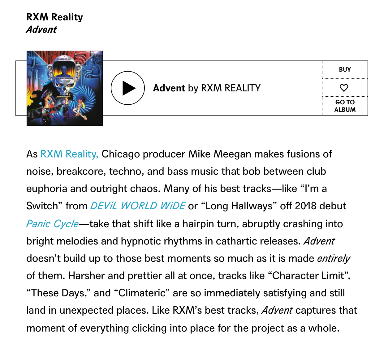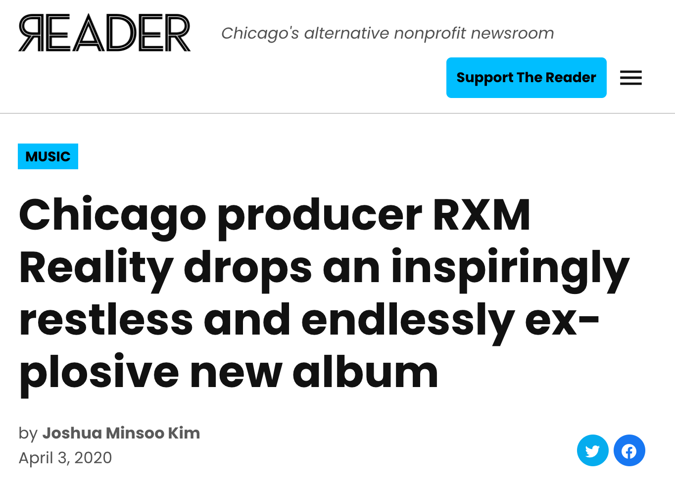 As "RXM Reality" and "When 2", I make genre-bending electronic music. The music employs pointillistic beat mosaics and melodic arrangements, while signaling to some vision of contemporary pop noise soaked in adrenaline and ballistic energy. The production thrives on drama, conveyed in mammoth bursts of overlapped drum elements planted over quick-cycling snippets of software synthesis and MIDI guitar.